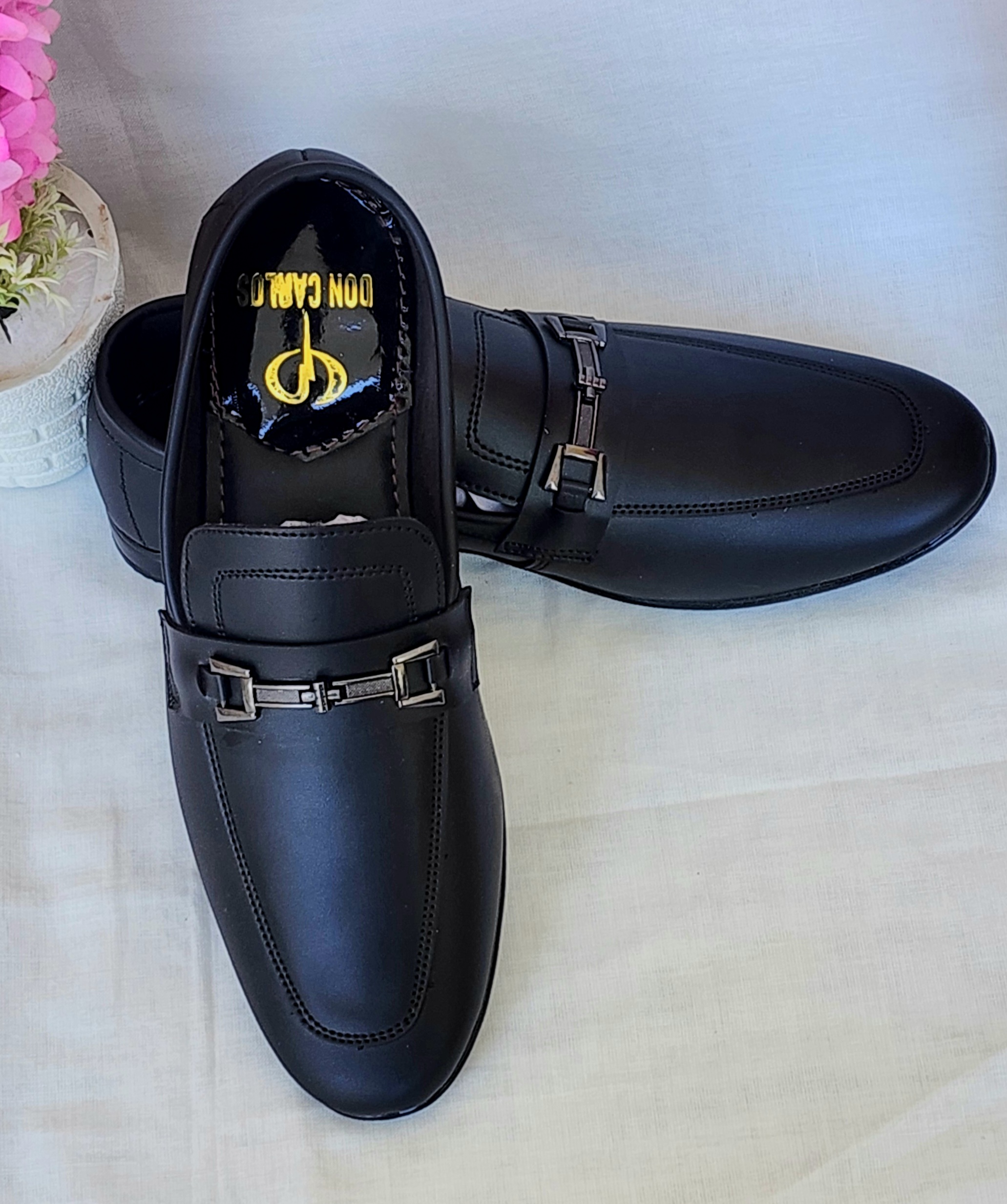The ultimate slip-on for the modern man. These classic Don Carlos penny loafers, available in rich Burgundy and timeless Black, feature a smooth finish and an elegant metal bit detail. Perfect for work, weddings, or a refined casual look.